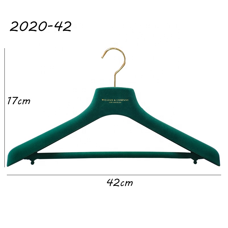 Logotipo personalizado de lujo de terciopelo de hombro del hotel de plástico abrigos trajes perchas para armario